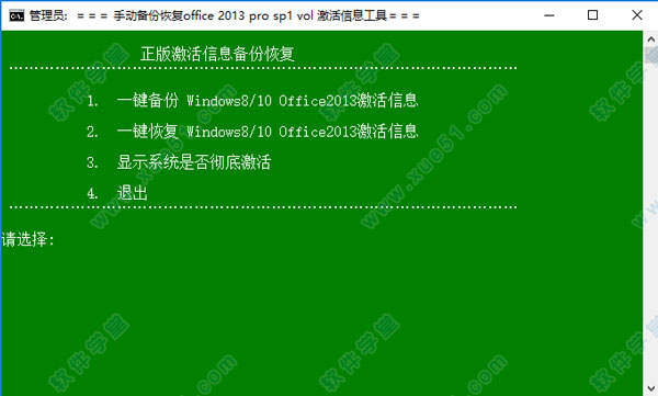 (1)安装官方版永久激活后,运行激活备份还原.cmd,选1备份激活信息。