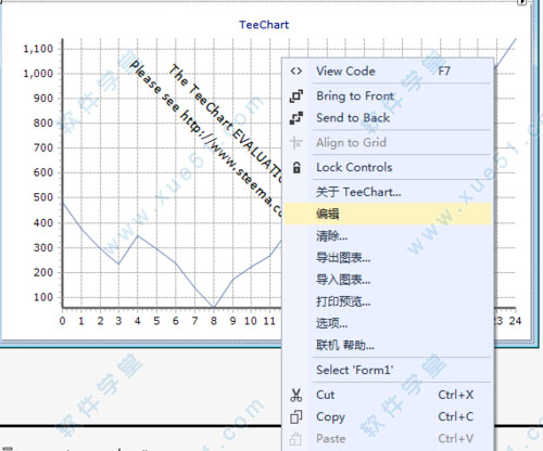 TeeChart控件属性设置与C# .NET其它组件一样,TeeChart组件也有许多属性可以设置,已达到你需要的显示效果比如曲线类型、曲线粗细、图像类型、标题等,方法很简单,只需要在TeeChart控件上右键单击,在弹出的菜单中选择编辑就会跳出控件属性设置界面,设置基本的属性啦。