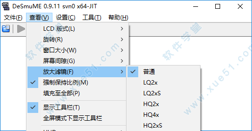 在菜单中选择-查看-放大过滤器-HQ4X,可以达到增强模拟画面的效果。使用笔记本的朋友,如果处理器在I3级别以下,这里可以选择“正常”,以保证模拟游戏运行速度。
