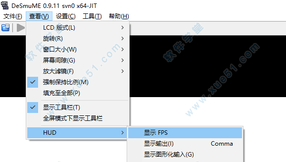 查看- 平视显示器-显示FPS,可以显示模拟游戏的运行速度,一般该值为60,平时可以关闭显示,在感到游戏运行不流畅时,可以查看确认,以便对模拟器选项进行调整。
