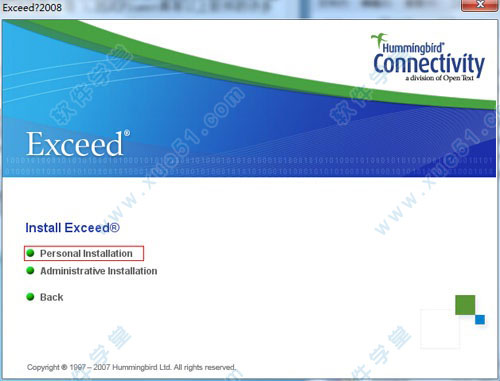 2、打开Exceed.13\Exceed 13\双击Msetup.exe进行,点击Personal installation与install exceed即可。