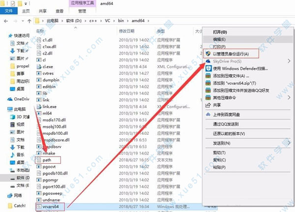 3、保存之后,鼠标右击点击vcvars64文件以管理员方式运行或者双击运行vcvars64文件,运行完之后会自动生成一个Path文本文件。