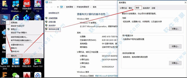 5、鼠标右击点击桌面的“此电脑”。依次点击“属性”>“高级系统设置”>“高级”>“环境变量”。