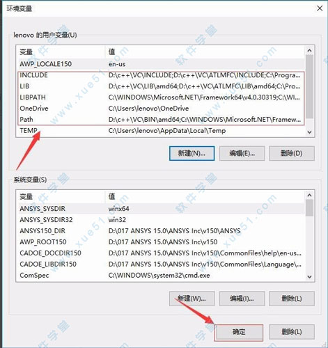 7、在环境变量界面下的“Lenovo的用户变量"栏中创建好环境变量之后其最终结果如图下所示。点击“确定”。关掉其相关界面。