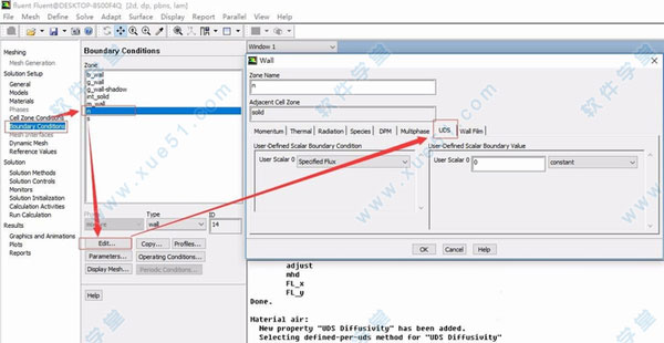 12、之后就可以在边界条件中的UDS界面设置UDF的参数了。