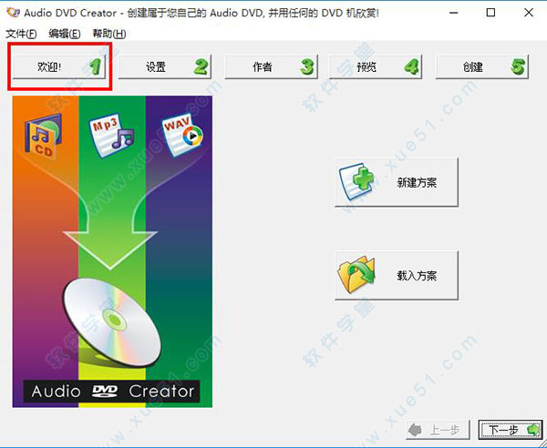 刻录软件,相对于音乐CD来说,音乐DVD提供的高质量多声道环绕立体声效果让听众更加能感受到音乐的魅力以及那种身临其境的真实感,如此美妙的声音怎么能错过,要想有这种效果,可以使用它来制作DVD-Audio。它可以将标准的音频CD或者MP3音乐文件编译成有着DVD视频效果的,可以在任何的DVD播放器中使用。小编为你们带来的是audio dvd creator中文破解版,更加方便你们的使用,需要的朋友可以下载哦!
