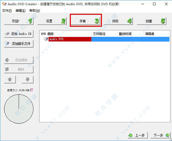 单击“音频DVD”按钮后,向导将进入下一个步骤“设置”页。如果你点击“音频CD”按钮,向导将进入“作者”页面,因为没有音频CD的设置。