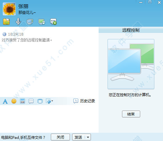.远程控制,申请控制对方的计算机,对方接受请求后,可以查看对方计算机桌面并进行控制。