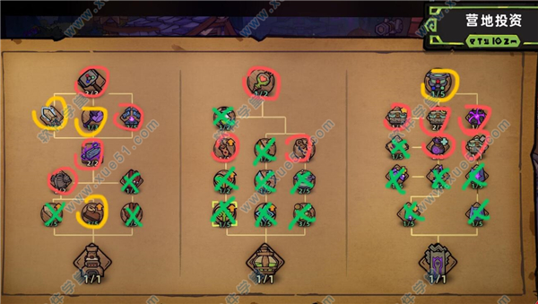2、为了解锁后面强力的天赋技能点,前面的都是先点一次,不要多就一次。等所有图标都开满后,再根据第一准则补点。3、先开最左边的铁匠铺,然后开最右边的虚灵,最后开中间的炼金。