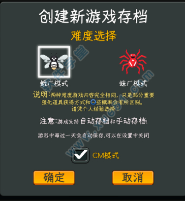 1、首先玩家进入游戏,在创建新游戏存档时,勾选下方的gm模式;