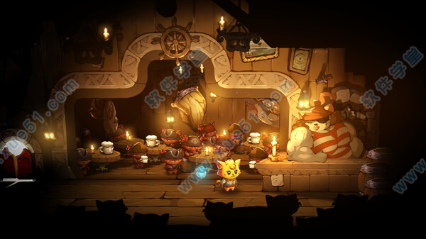 4、海盗喵角色扮演:玩家将扮演一位海盗喵,驾驶航船在“喵勒比”海上游历,与海盗鼠和其他敌人斗智斗勇。