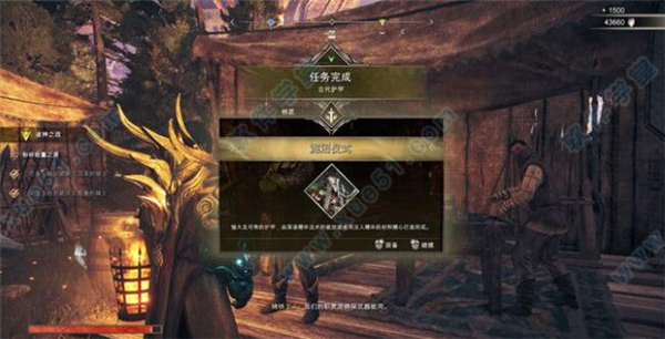 5、集齐三份护甲部件后,返回初始营地交付任务,就可以获取奖励护甲“沼泽仪式”。