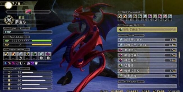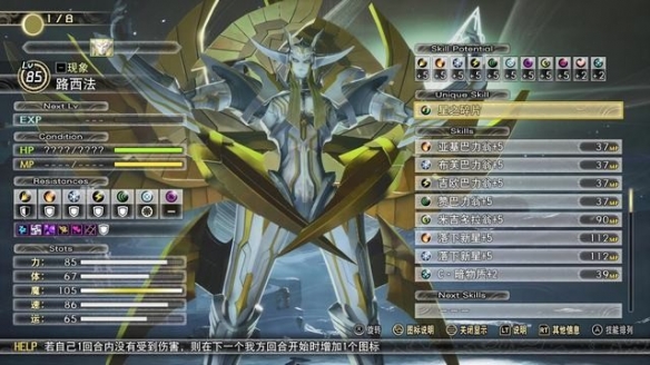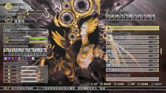 耐性属性:破魔吸收,物理半额,暗无耐性,其余均全抗