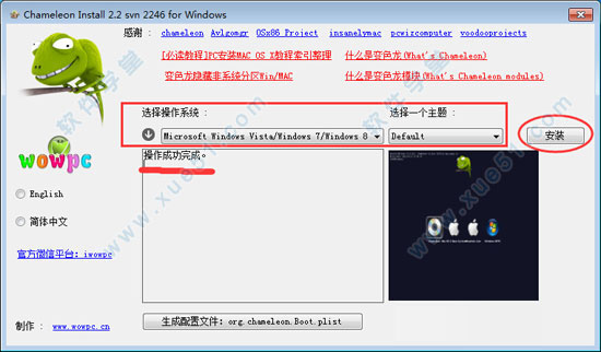 1、本程序方便在Windows下安装图形化引导程序Chameleon 2.0 RC1。