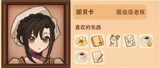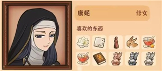 5、妮娜,喜欢的物品有勿忘我、火山女神木雕、唱诗班乐谱集、小熊猫、莫娜肖像、葡萄果酱、吐真剂、《占卜的起源》