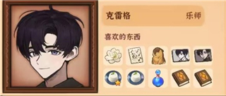 12、克雷格,喜欢的物品有茉莉、乐谱集、土拨鼠、克雷格肖像、马奶布丁、隐形药水、《黑色谜语书》、《红色谜语书》