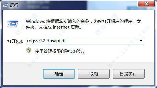 4、点击开始菜单-运行-输入内容“regsvr32 dnsapi.dll”后,回车之后就可以解决了
