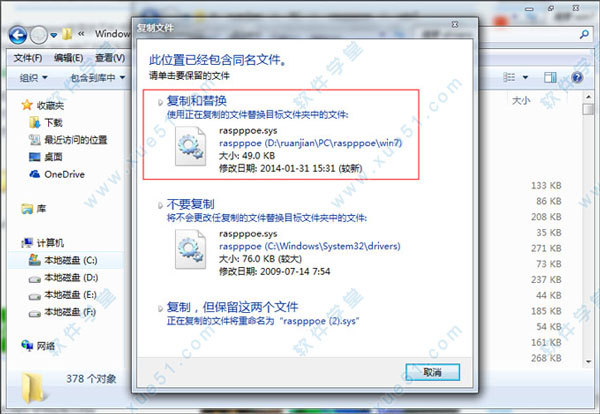 2、将raspppoe.sys文件放到提示丢失的文件的程序目录下。
