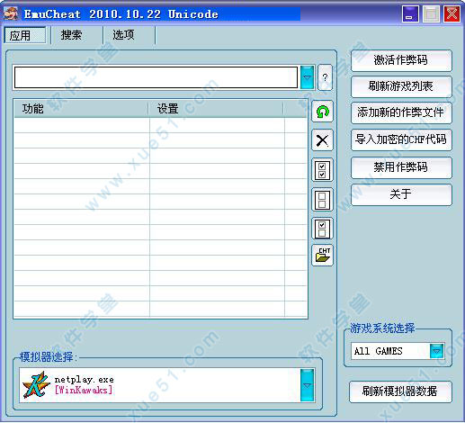 最下面是所对应的模拟器,无论是使用作弊码还是修改都要选择当前的模拟器。使用教程