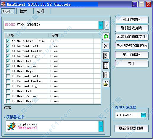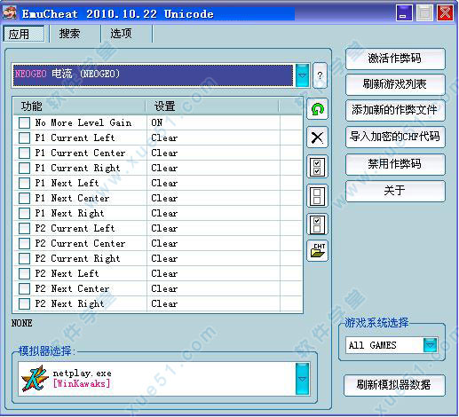 2、在选择好支持的模拟器后会自动弹出游戏作弊码列表。