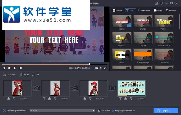 2、制作自己的幻灯片主题除了内置幻灯片主题外,此幻灯片制作工具还包含许多文本效果,过渡模式,过滤器和其他元素,可帮助您自定义现有主题并制作新主题。
