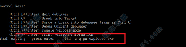 1、ntsd.exe下载后右击打开,由于是DOS界面所以不用安装了。