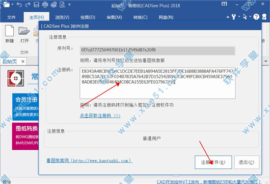 2、然后会弹出注册界面,我们输入注册码完成会员注册提示