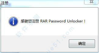 3、提示“感谢您注册rar password unlocker!”,表明软件激活注册成功了