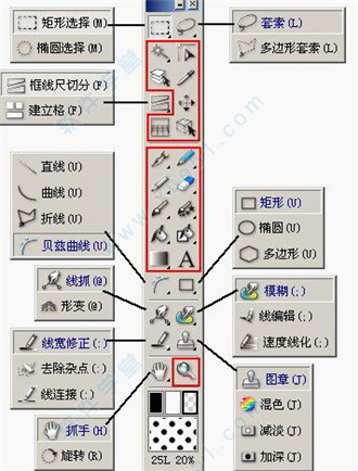 6、工具箱单击键盘f2可显示【工具箱】面板。comic studio的所有工具都集成在此面板中。