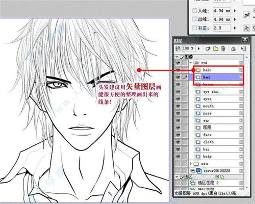 3、矢量层:图像数据基于矢量形式,可以任意放大缩小不会出现锯齿、模糊。(印刷出来线条边缘清晰锐利。)这个图层的线条都可以单独的被改变形状,或者改变粗细。举个例字,如果我画的某个人物的脸部有些不够饱满,我可以使用矢量线调整工具单独把某个线条拉伸调整。这似乎对画较长的线条很有帮助。(我一般都在这个层绘画。)