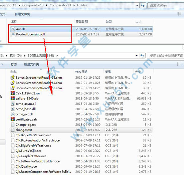 1、安装完成该软件之后,先暂时不要运行ABBYY Comparator,打开数据包,将FixFiles文件下的破解补丁复制到软件安装目录下。