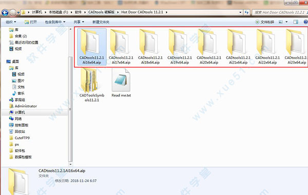 1、下载并解压CADtools 11破解版安装包压缩包,然后将所有后缀为.aip插件文件夹复制到AI的Plugins文件夹下,一般默认路径为C:\Program Files\Adobe\Adobe Illustrator CC\Plug-ins