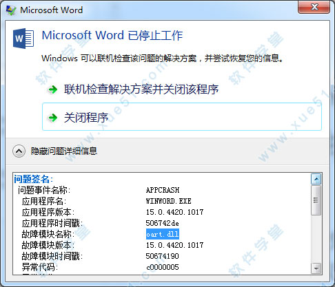 四、如何解决word中模块故障?1、进行word编辑的时候总是出现崩溃现象,尤其是在保存文档的时候,点击查看问题详细信息才发现是一个所谓的模块产生故障。