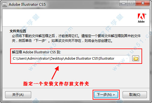 1、首先我们需要下载Adobe Illustrator cs5官方中文原版安装程序,下载完毕后直接点击压缩包程序解压到指定文件夹。