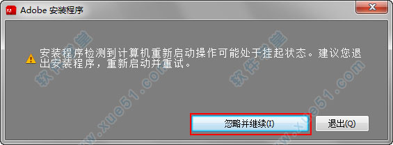 2、解压完毕后会自动启动安装程序,在这个过程可能会出现下图所示弹框,点击忽略即可。