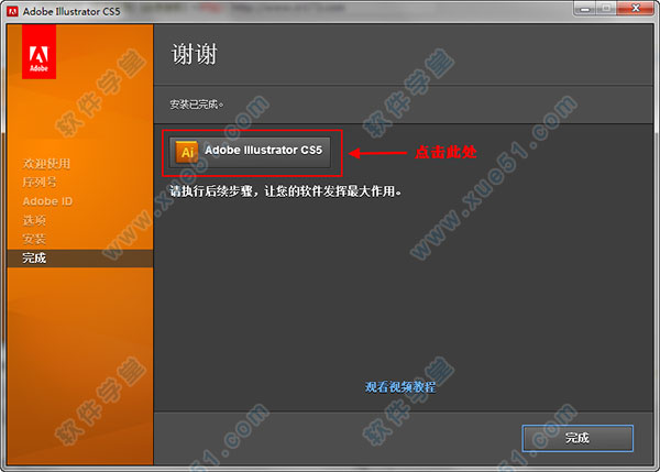 7、程序安装完毕,点击Adobe Illustrator CS5进入软件。