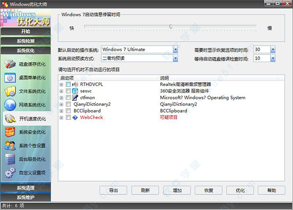 6、开机速度优化模块,调整部分品牌机自启动程序的识别