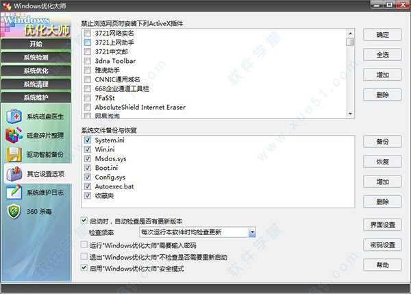 4、ActiveX 清理:快速分析系统中冗余的ActiveX/COM组件,并在备份后予以清除。