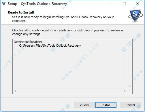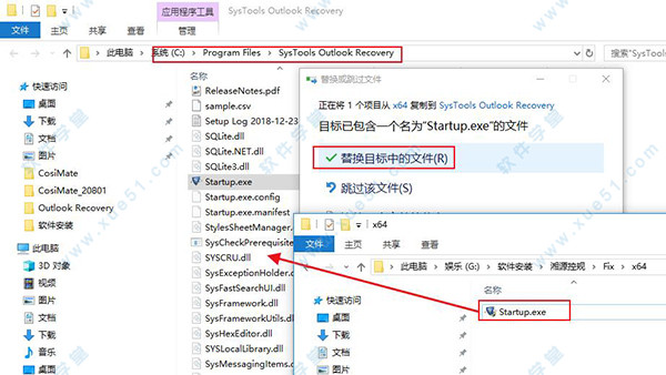 7、安装完成后,将文件包中对应操作系统位数的“Startup.exe”破解补丁复制到软件安装目录下替换源文件,默认路径为:【C:Program FilesSysTools Outlook Recovery】。