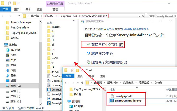 7、安装完后将破解补丁复制到安装目录下替换原文件,一般默认安装目录为C:\Program Files\Smarty Uninstaller 4