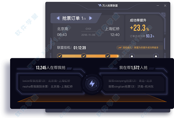 万人抢票联盟32位/64位官方版下载,这时候就可以用这款抢票软件,它会自动读取你的火车票订单,用户登录挂机即可进行抢票,有需要的伙伴们可以下载使用!