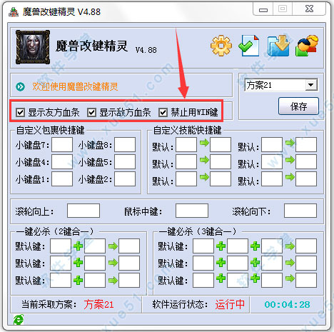 2、技能快捷键的定义:当英雄技能的快捷键在操作时如果出现按键设置不合理时,我们就可以利用dota改键精灵(魔兽改键精灵)功能将英雄的技能施展快捷键设置在手指更操控的范围内。