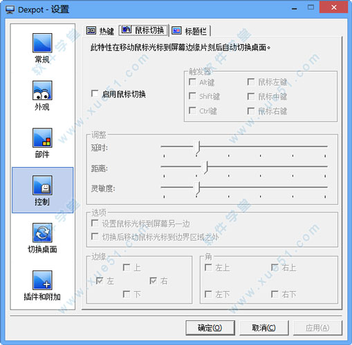 4、选择控制后,可以对软件常规操作进行设置,如切换桌面设置快捷键。
