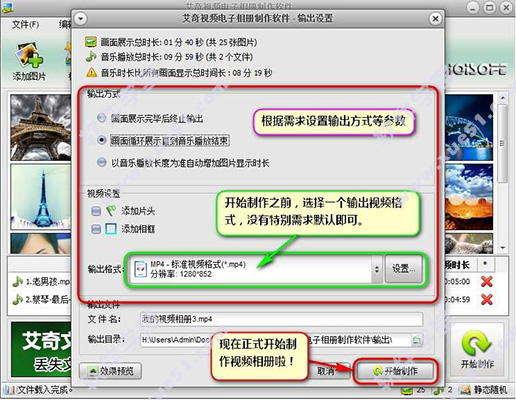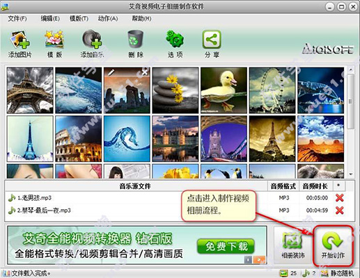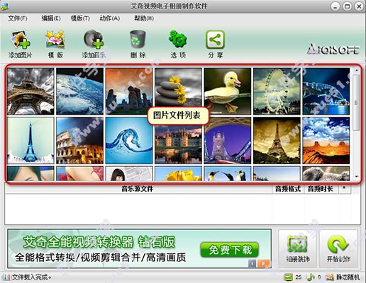 艾奇视频电子相册制作软件是一款能够把图片和音乐结合在一起做视频的多