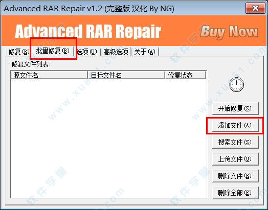 3、若要批量修复多个压缩文件,则在批量修复的选项卡中单击“添加文件”,添加需要需要修复的文件即可。