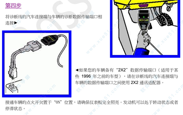 4、在连接完第二步之后将诊断线的汽车连接端与车辆的诊断数据传输端口相连接。