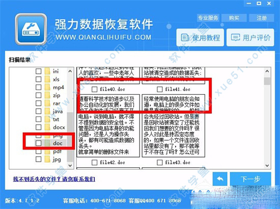 4、扫描结束后勾选需要恢复的内容,点击“下一步”设置文件储存路径