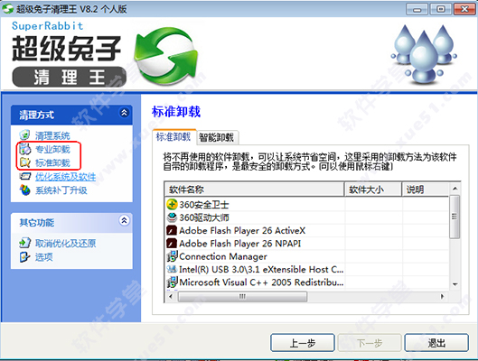 2、在“专业卸载”和“标准卸载”两个选项中遇到一些顽固的软件使用专业卸载,将它们卸载的不留痕迹,统统的标准卸载就可以了。