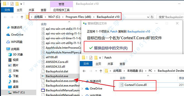 6、将破解补丁复制到C:\Program Files (x86)\BackupAssist v10目录下替换原文件即可