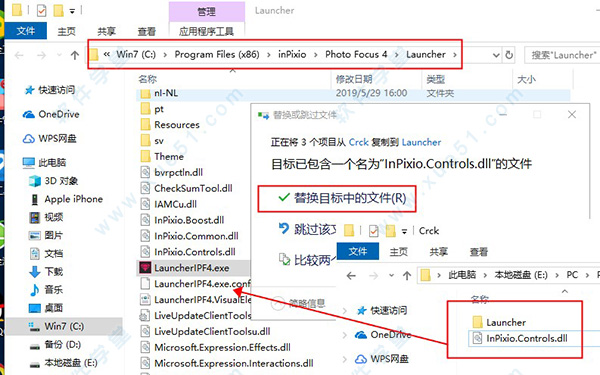 4、将破解补丁复制到C:\Program Files (x86)\inPixio\Photo Focus 4\Launche目录下替换原文件即可